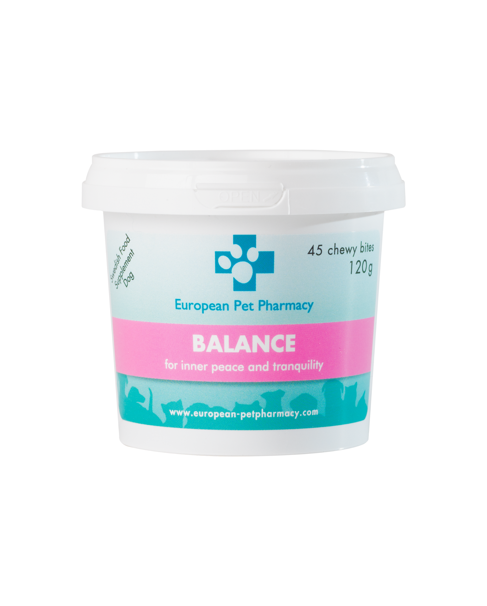 European Pet Pharmacy's Balance provides inner peace and quiet. Use in situations such as the vet, claw cutting or car ride. A complementary food that can help reduce anxious behavior in daily situations where your dog is uncomfortable. Can be given in situations such as traveling, separation, claw cutting, change of environment or for example during veterinary visits. Can be used daily.
